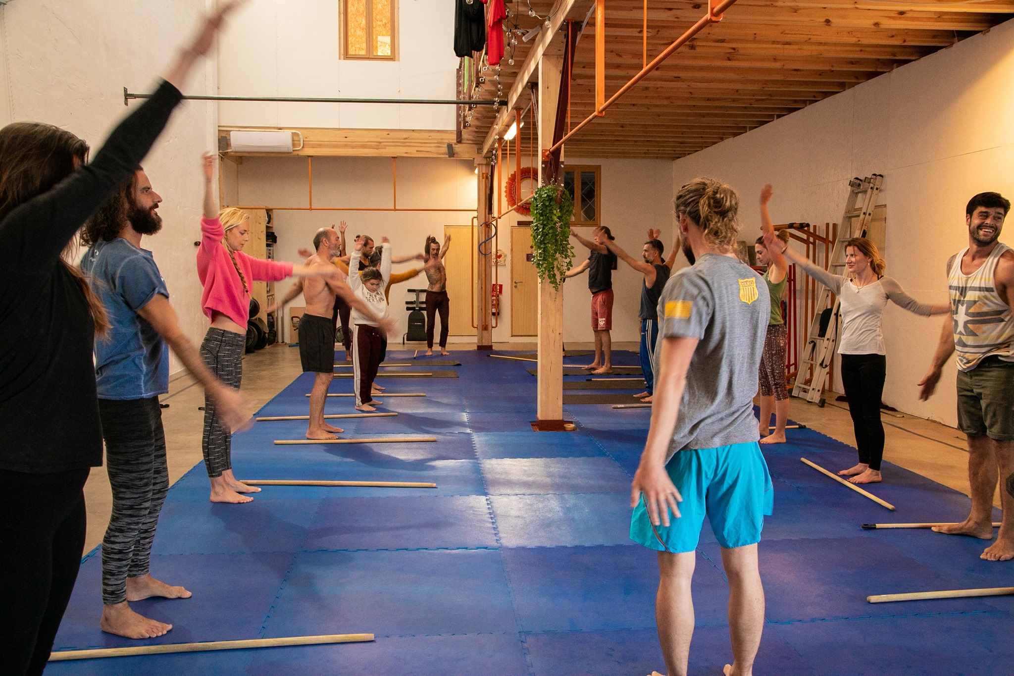 Warmup in Nick's Primal Movement class at Project Ibiza.