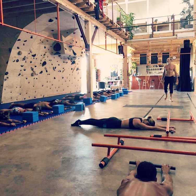 Nick leads his Primal Movement class in spine strengthening poses.
