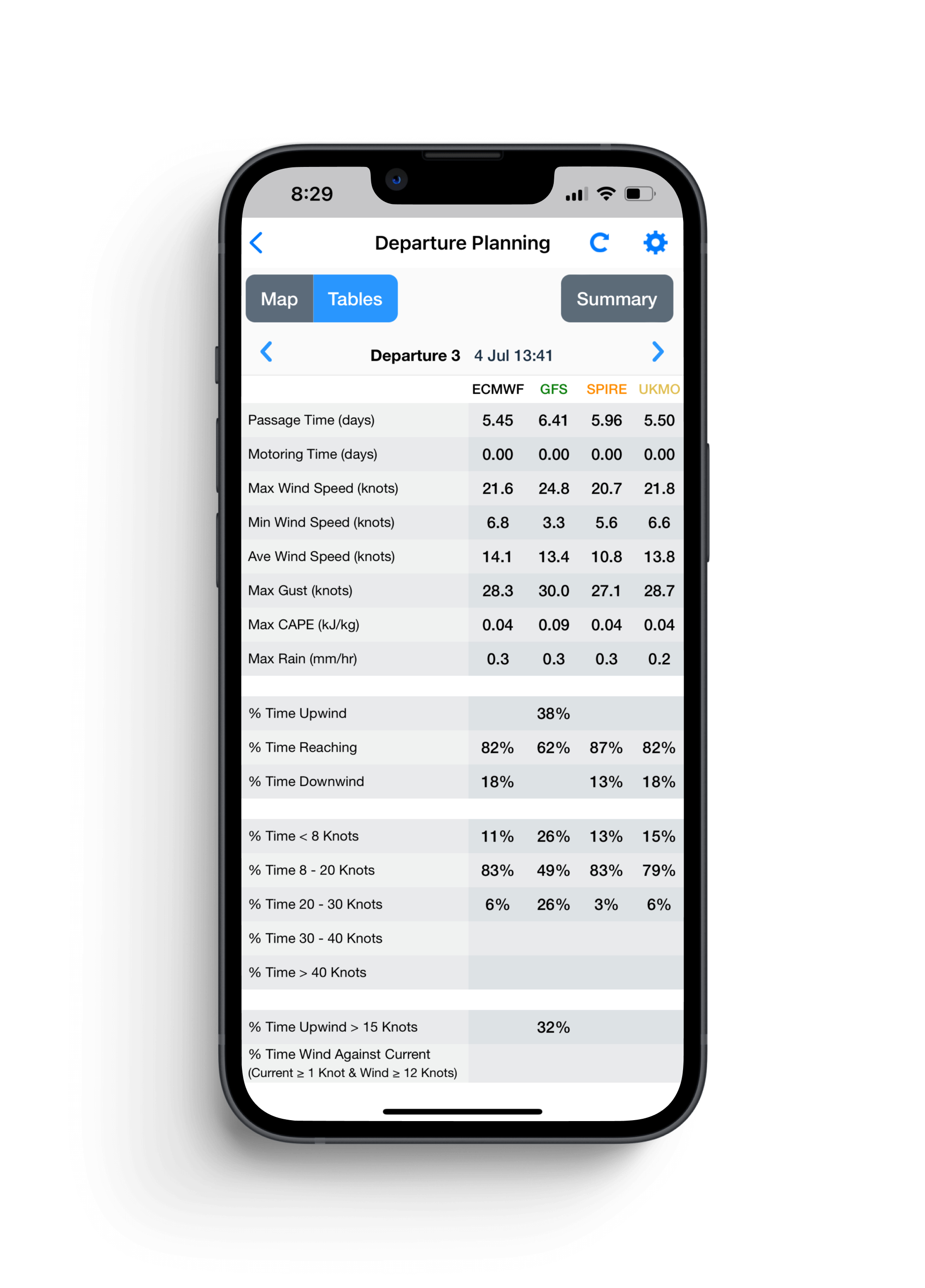 Like planning a road trip—easily thrown into disarray by traffic jams and road closures— unpredictable weather patterns can occur on the water as well. Bilger mitigates this risk by offering real-time updates through PredictWind’s mobile app, along with fully interactive maps and push notifications, allowing sailors to stay informed and adapt their plans in a split second on the water.