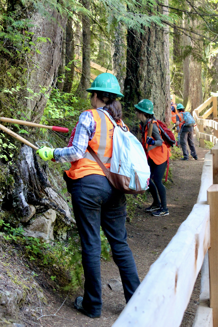 “Everyone grab a dutchie, loppers, or a shovel. We are looking for Vine Maple disrupting the trail,” says Rodger Lee, Trails Foreman with the US Forest Service. “When it comes to us, and trail maintenance, sometimes we gotta go through and nuc an area. Otherwise, people will make their own trails, called social trails, to find a way around it. That’s what we don’t want.”