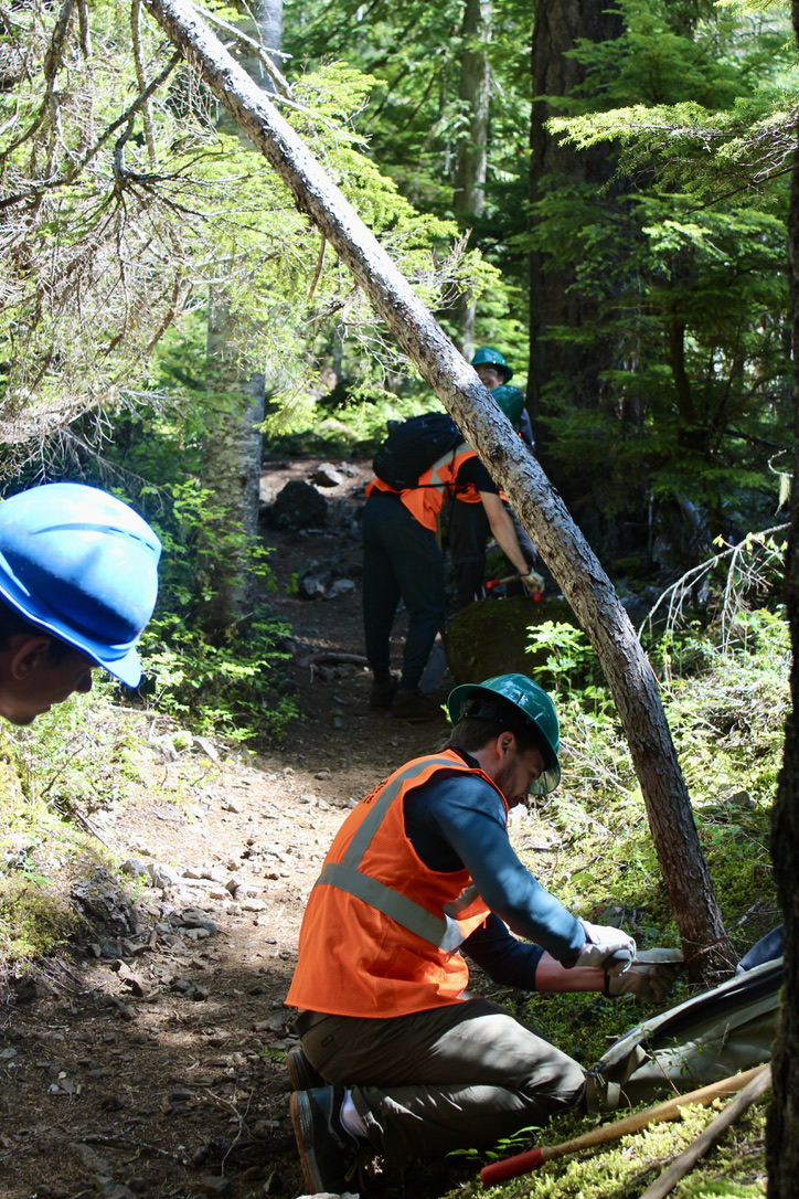 When I turn around to see the crisp edges of the trail behind us, previously shrouded in Vine Maple, I see the value in our work. When I see hikers stopping to consider using a social trail, but see the sticks and logs our group has piled in front of it and instead decides, to respect the trail, I see the value in our work. When I watch my group members holding branches for one another, offering to carry the other’s load, and sweeping the unreachable bugs off one another’s back I see the value in our work. Because it is all about becoming a steward for the environment. In order to do that, we need to not only put in the work but also build the community. Together we are actionable; together we are accountable.