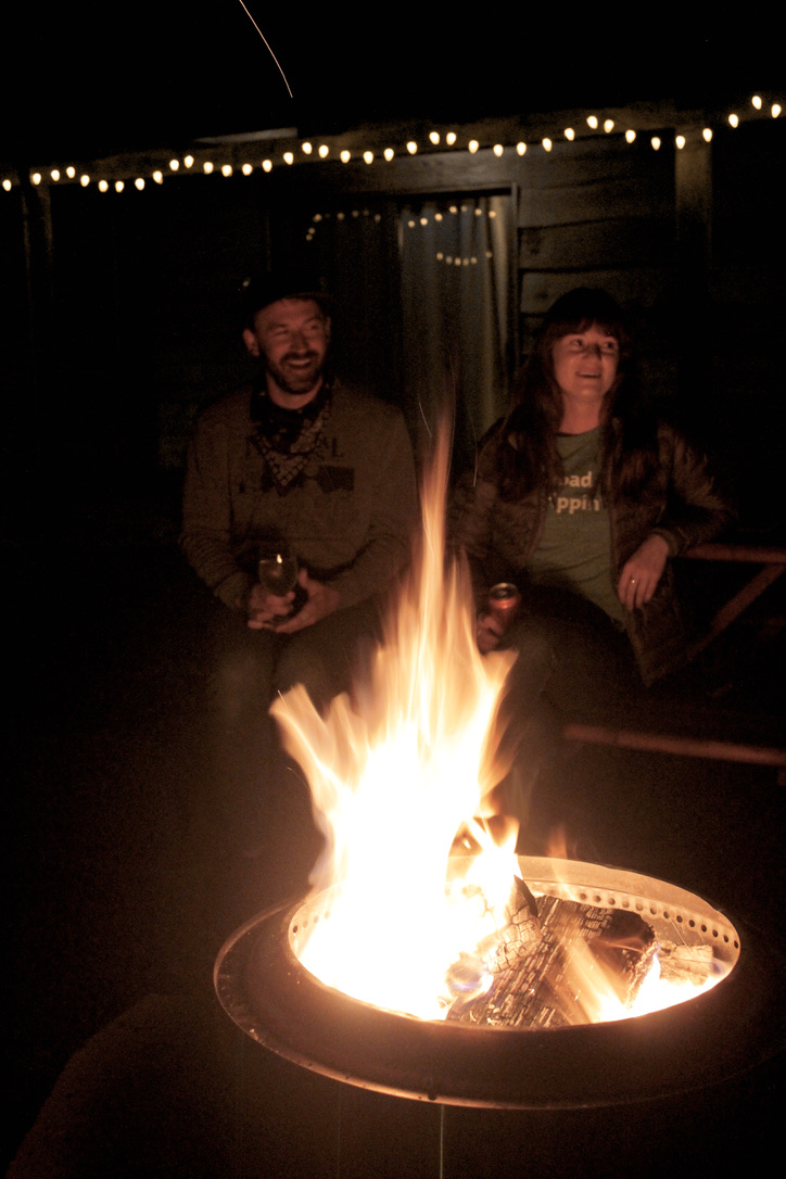 We pick up takeout dinner and growlers from the grill we ate at the night before and head to the Lodge to start a fire. This time we remember to pick up s’mores makings and the sweet teeth of the group go to town. Soon Gary and Alyssa come down and tell us the story about the night of the fire. They tell us about how windy it was and the power lines were down, so they went door to door grabbing their guests and neighbors. Luckily, the fire never touched the property and they were able to return. They also tell us about their neighbor, “One-Shot Dolores” who is an old, potentially senile woman known in the area for killing cougars who threaten her cats with just one shot from a handgun.