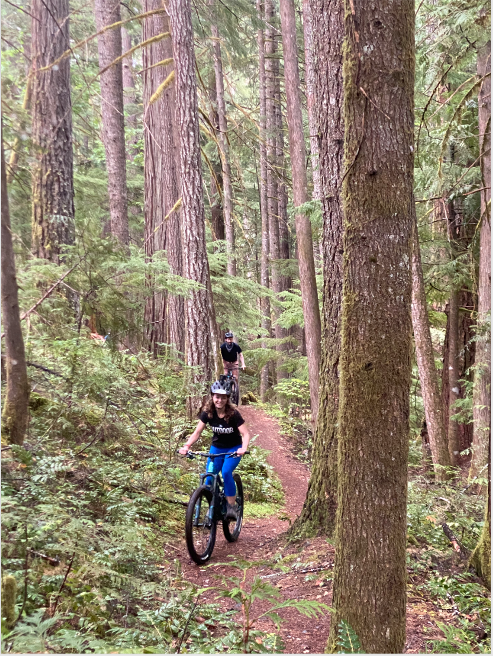 The group quickly unpacks, heads to the Lodge’s garage, and finds the bike labeled specifically for them (We were asked ahead of time our height and weight, so the bikes all set up for us when we got there!). We are dropped off at the trailhead and immediately greeted by a freak downpour. So this is where the “moderate-intensity” becomes a slight question mark. Our biking guide Alex has this calm composure that stems from his deeply laid-back nature. So as all us novice mountain bikers send each other quick looks questioning whether we are really doing this or not, Alex says, “Well now the people in the back won’t have to suck up our dust.” He starts down the trail, eliminating any need for hesitant discussion of bailing. The trail is narrow, about half the width of the hiking trails in the area, and the roots and rocks that polka-dot the trail are slick and wet. I go slow at first, only to find that the slower you go, the more your tires catch on every surface, threatening your balance. So I turn up the gear and accelerate the bike forward, finding exhilarating energy as I feel my flow state increasing.