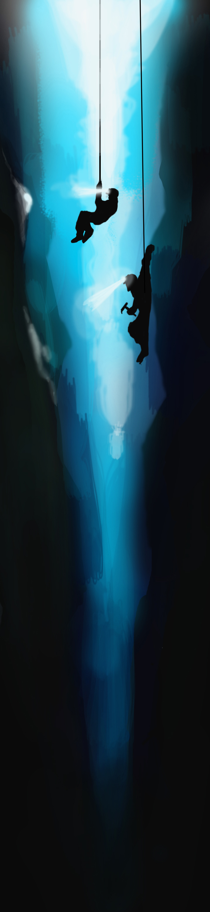 Alex allowed me to take control of the mission, even though he was the team leader on paper. I directed the team to set up some ice anchors and send rappel ropes down into the crevasse. Matt and Alex then rappelled down into the darkness, along with two of the Icelandic firemen. Upon arrival at the jeep they placed several ice screws into the walls, creating a safe anchor to protect them from slipping off the side of the vehicle into the abyss and also provide a safety net in the event the jeep should shift and suddenly fall further into the darkness.