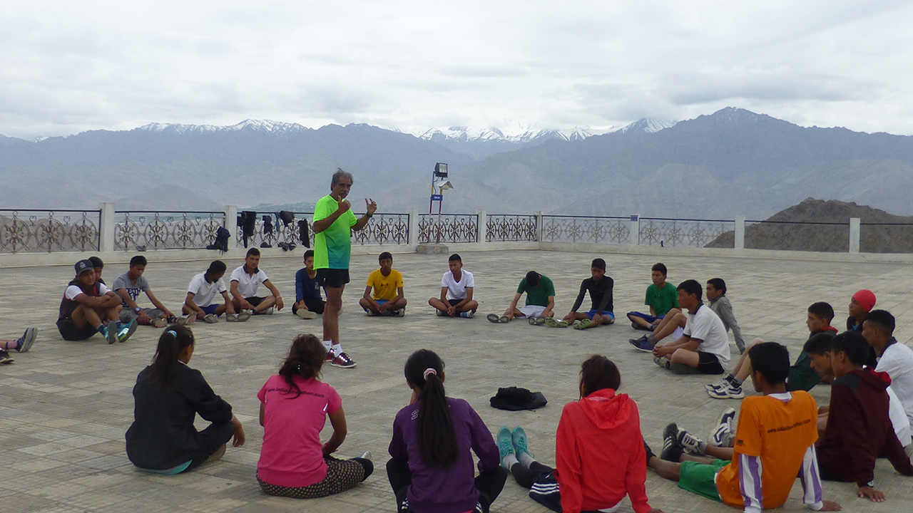 The founder of Ladakh Marathon, Chewang Motup Goba, is an unassuming gamechanger. An experienced mountaineer himself, Motup is a man who has always dreamed big. In 1983, at the age of 18, he attempted a solo ascent of Everest along the sidelines of an IMF expedition. Though he didn't make it to the summit, this audacious attempt was representative of the die hard spirit of the Ladakhis. By the turn of the century however, all that Motup saw among the youth of Ladakh was a spirit of rebellion and decadence. This was most evident in the long winter months, when the region remains cut off from the rest of the world. Youngsters had taken to smoking, gambling, playing snooker and largely spending their time indoors in dingy spaces. The only outdoor sporting activity available during the brutal Trans-Himalayan winter was a primitive form of ice hockey that the locals played on frozen lakes, wearing old cricket pads. Through a friend in Canada, Motup contacted the National Hockey League Players Association, a body that promotes ice hockey around the world. The NHLPA sent 50 professional ice hockey kits to Ladakh and triggered the now famous Ladakh ice hockey story. Motup says, “My idea in life is that if someone is good at sports, he can survive in any condition. Most of our youth are not exposed to good education and cannot compete with people from other parts of the country, but being born at this altitude, with our god gifted big lungs and hearts, we have a natural potential to be good at endurance sports.”