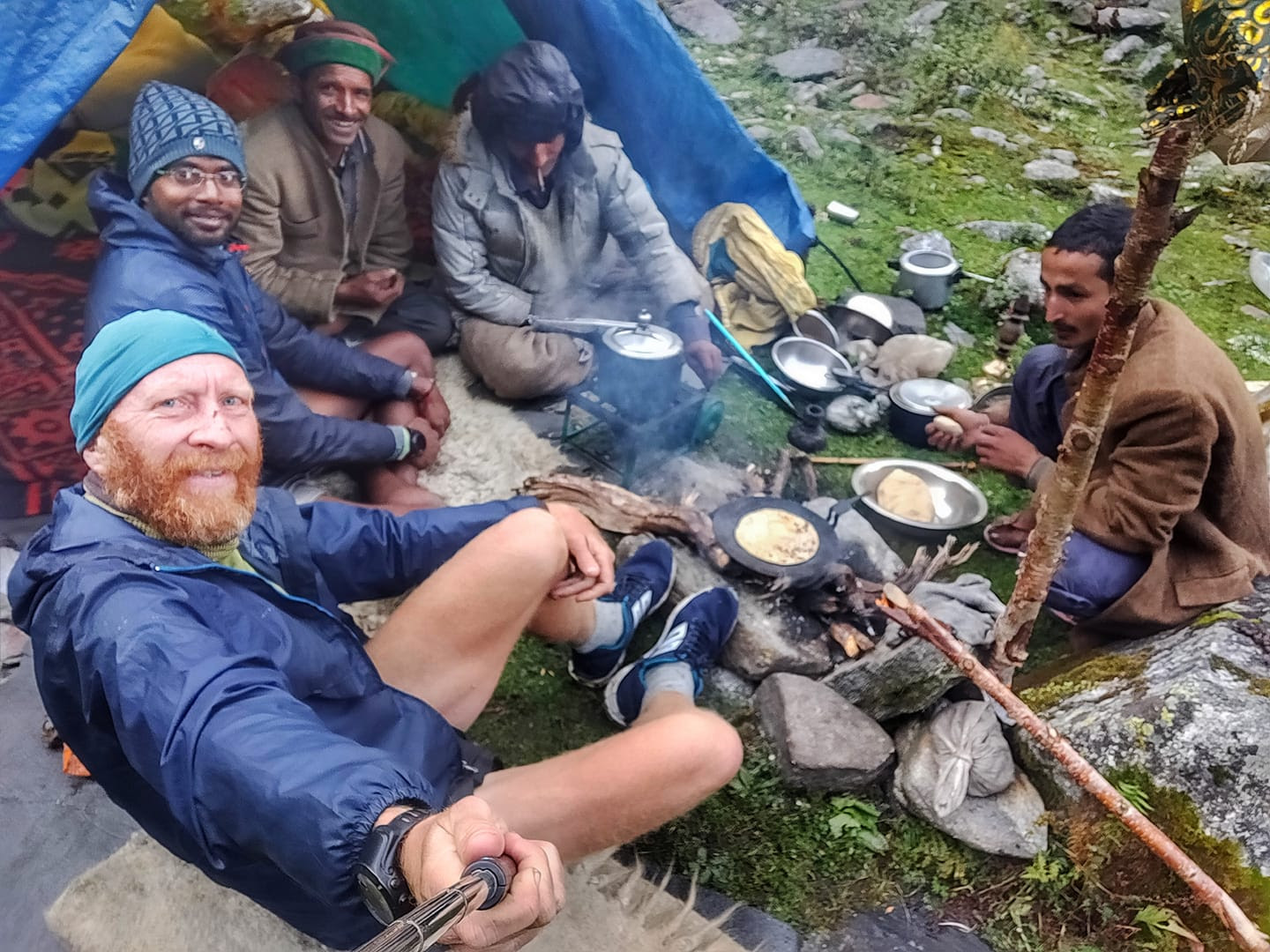 Your best friends in the mountains – the gaddi’s! Here preparing hot chai, fluffy roti and yummy aloo gravy for two starved (and half frozen) travelers after an icy crossing of the Rupin pass with heavy snowfall and hazel during mid-September 2018. The shepherds leave home at the start of summer in May and cross several high altitude passes to graze their large herds of 300 to 600 sheep and goats in the remotest corners of the Himalaya returning only six months later in Sep-Oct. Every few weeks they descend to the nearest village to resupply rice, atta and other food items. They use home woven blankets and clothing to stay warm in their temporary shelters in the alpine meadows between 3,000 to 4,000 meters altitude. The warmest hospitality can be found in the most remote corners of our planet.