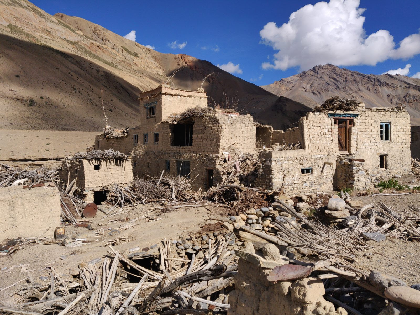 Tso Mesik, one of the many ghost towns one encounters along the remote Tsarap river valley while hiking from the Gata loops (Manali-Leh highway) in Lahaul towards Phuktal gompa in Zanskar, Ladakh. What appears to be once thriving settlements with beautifully constructed homes, surrounded by fertile farming fields have been abandoned for many years. Residents seem to have left in a hurry leaving everything behind. Was survival of the harsh life in this barren high altitude desert too tough, did a natural calamity (2014 floods) force them to leave, did the comforts of the city life tempt them to migrate or did their lifelines (water streams) dry up due to global warming and melting glaciers?