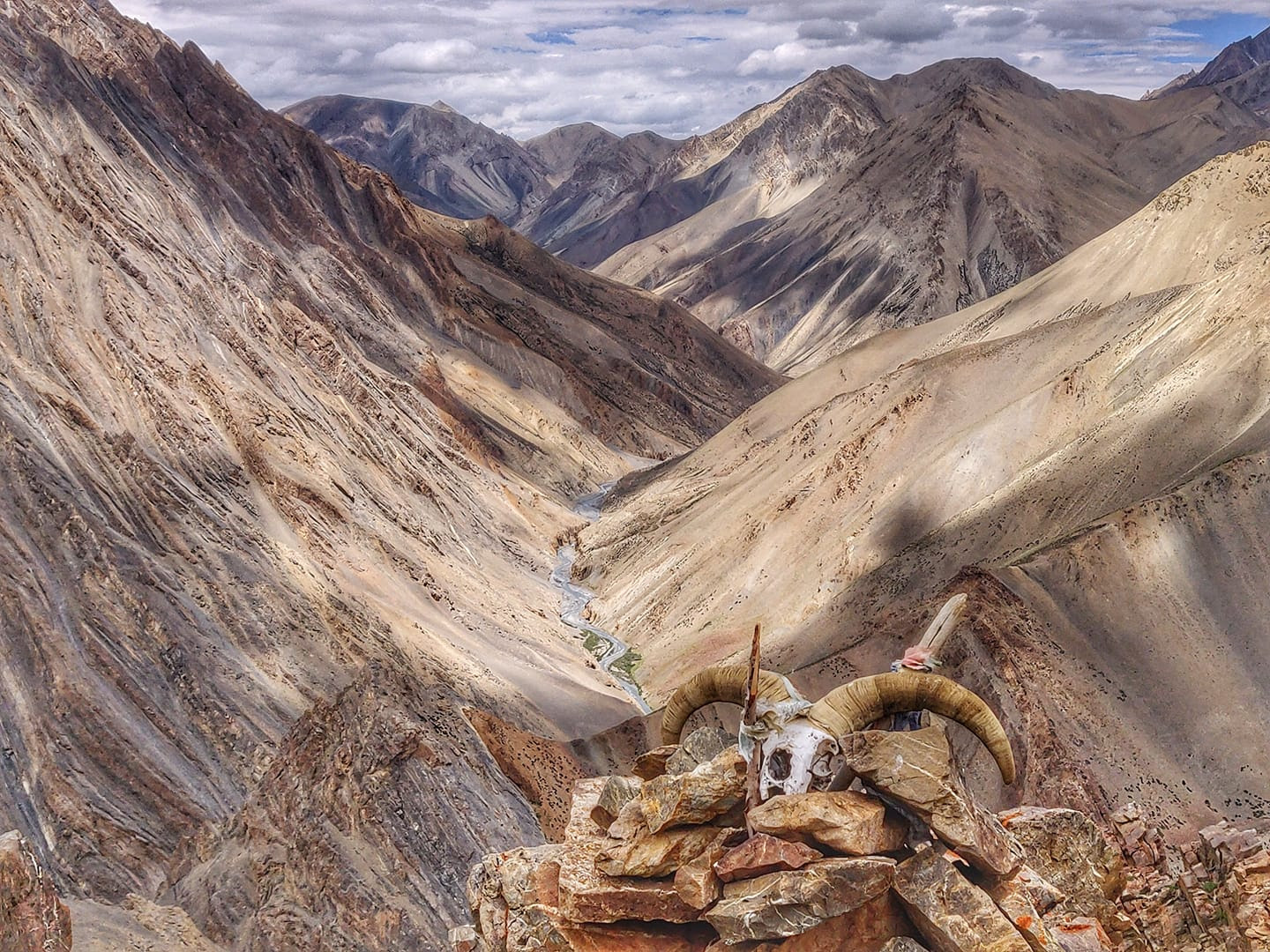 An ibex skull on the Lar La pass (4,670 m) deep inside the Zanskarian mountains in Ladakh on the way from Phuktal to Zangla. The entire journey involves crossing two other passes including Rotang La (4,900 m) and Padang La (5,170 m). On the way one passes through Shade village, one of the most remote settlements in Zanskar, being two days away from the nearest road head. Between Lar La and Padang La, I encountered yak herders grazing remote alpine meadows in this barren desert, producing 100 liters of milk from as many domesticated yaks every day, also producing butter and cheese. The same is transported using donkeys, horses and yaks to Shade village to survive the six months of total isolation during winter. All animals are carefully kept in enclosures at night, safe from nocturnal attacks by the elusive snow leopard.