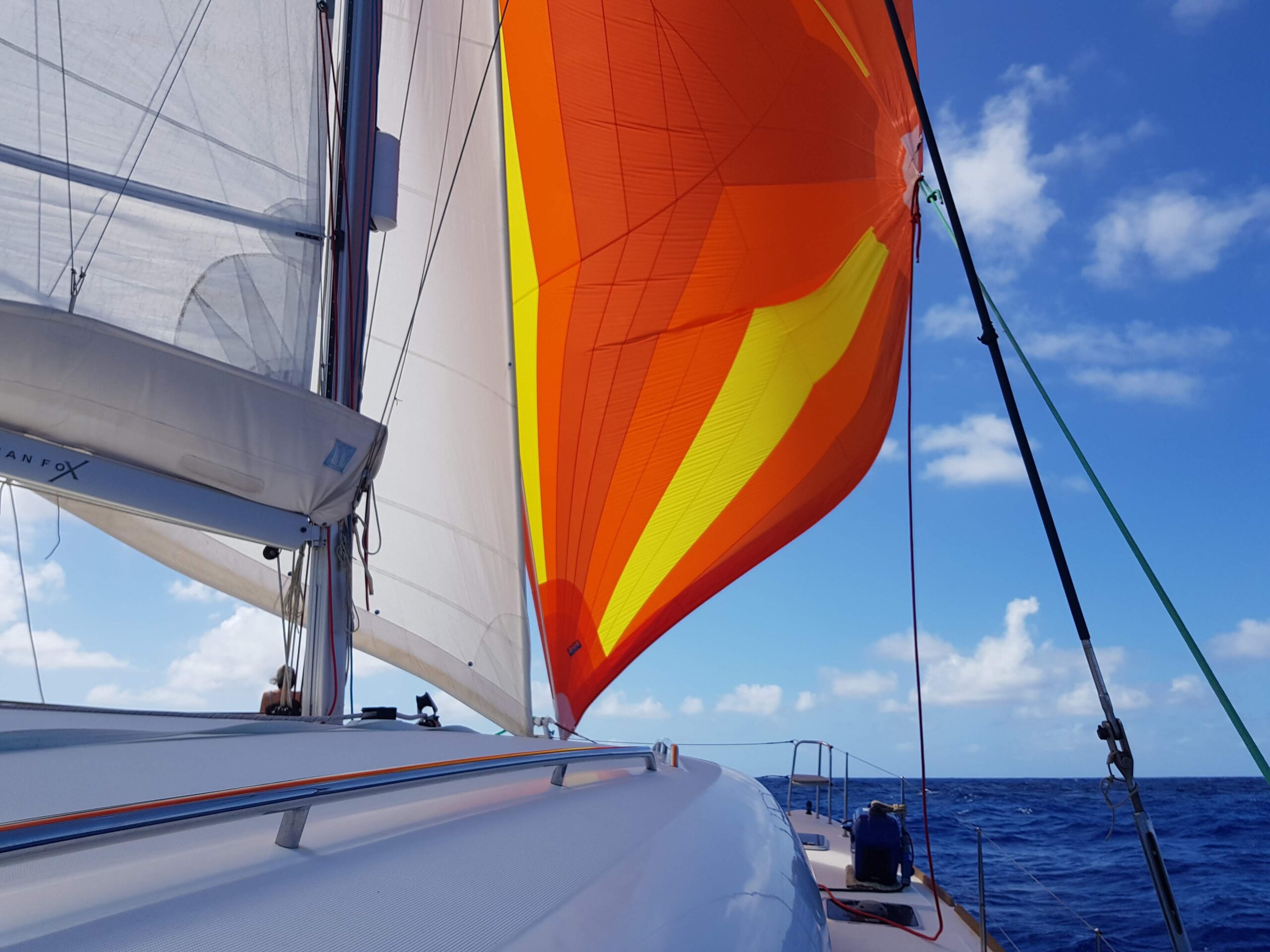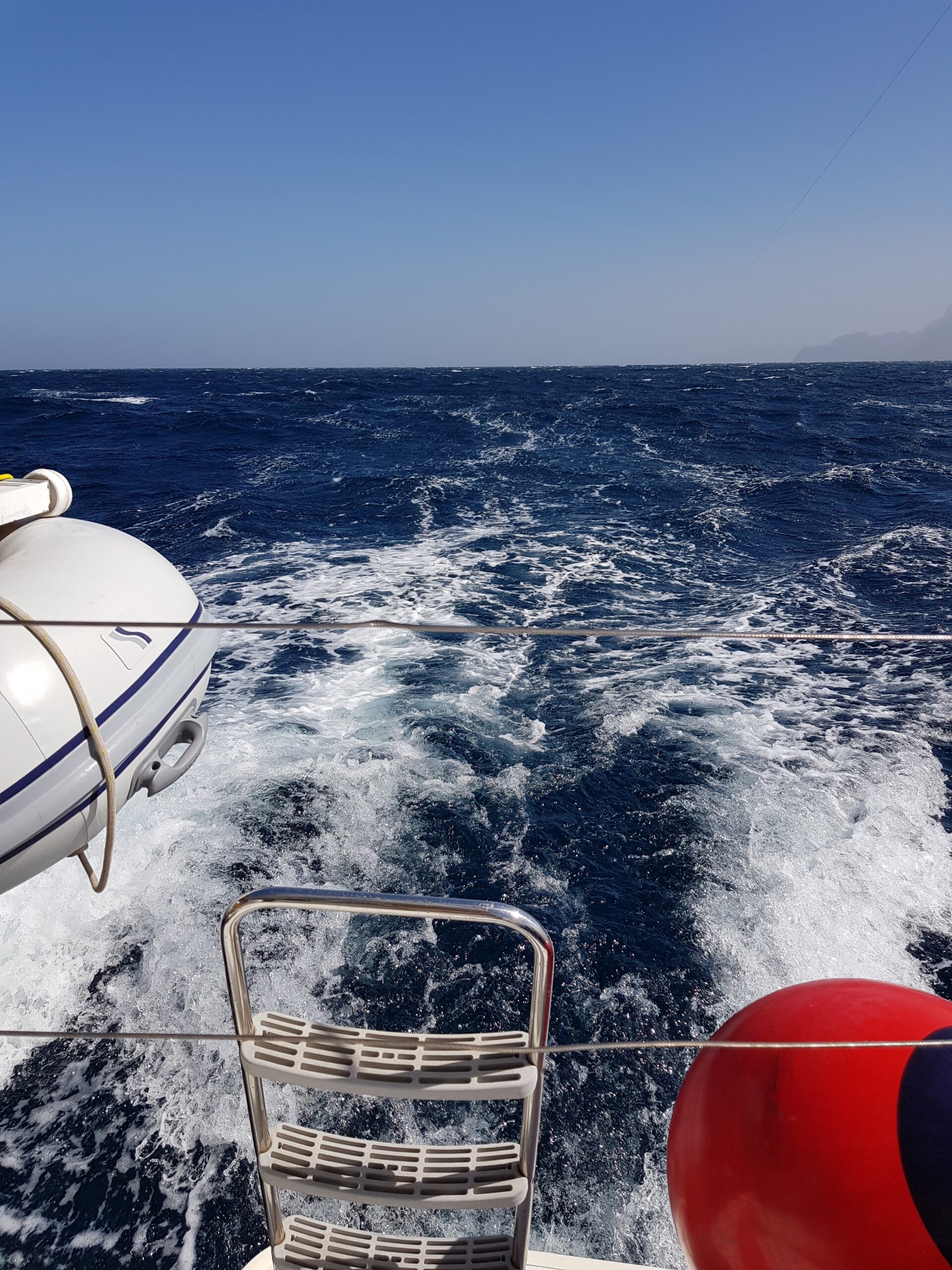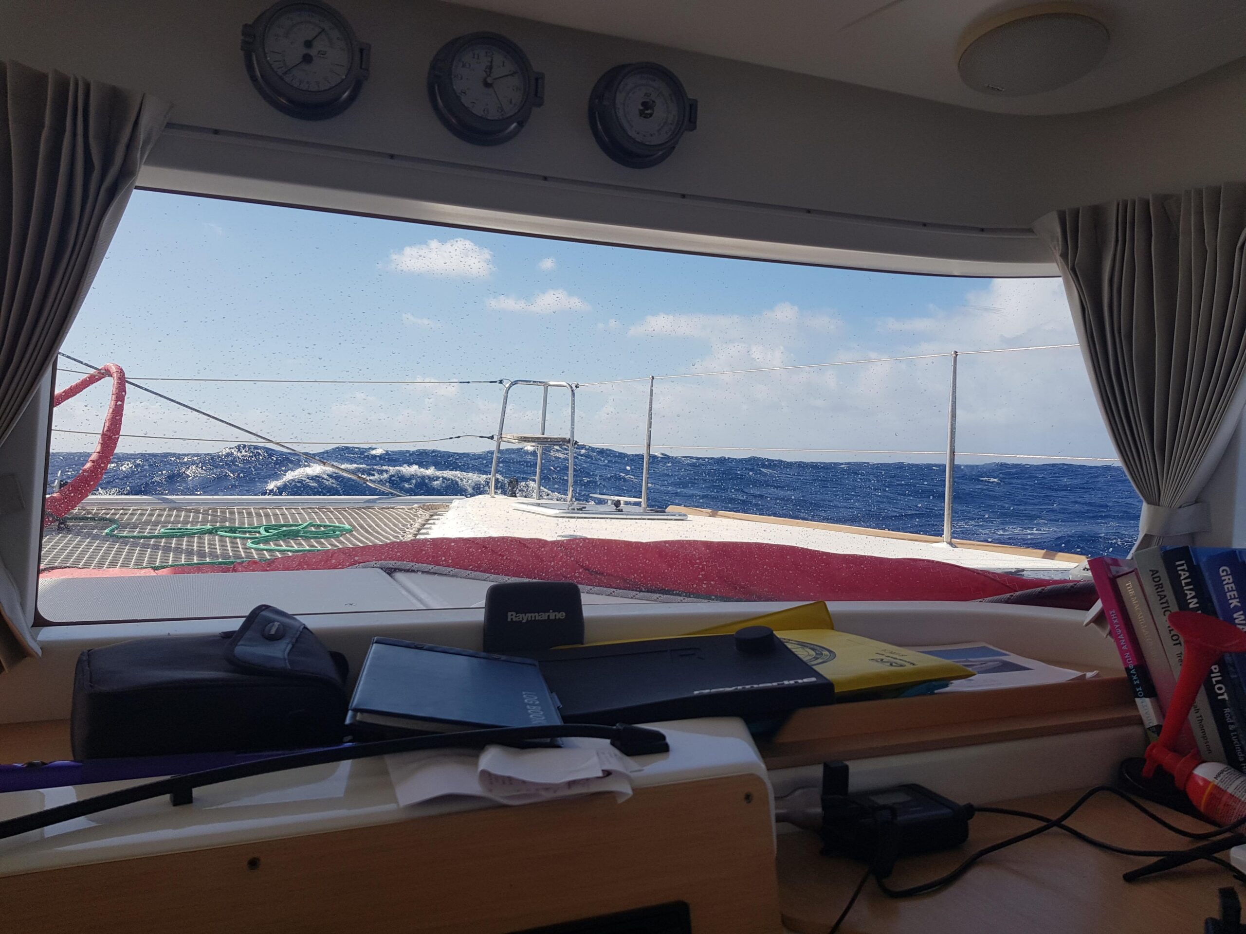 We held onto whatever we could for the next twenty-four hours, at times the boat would fall off a wave and crash sideways into the water, everything would land upon the floor, we were glad we were not on a monohull. Over the next few days the weather started to drop, we let out some genoa and brought the salt-encrusted lines back on board, and carried on heading south to our destination.