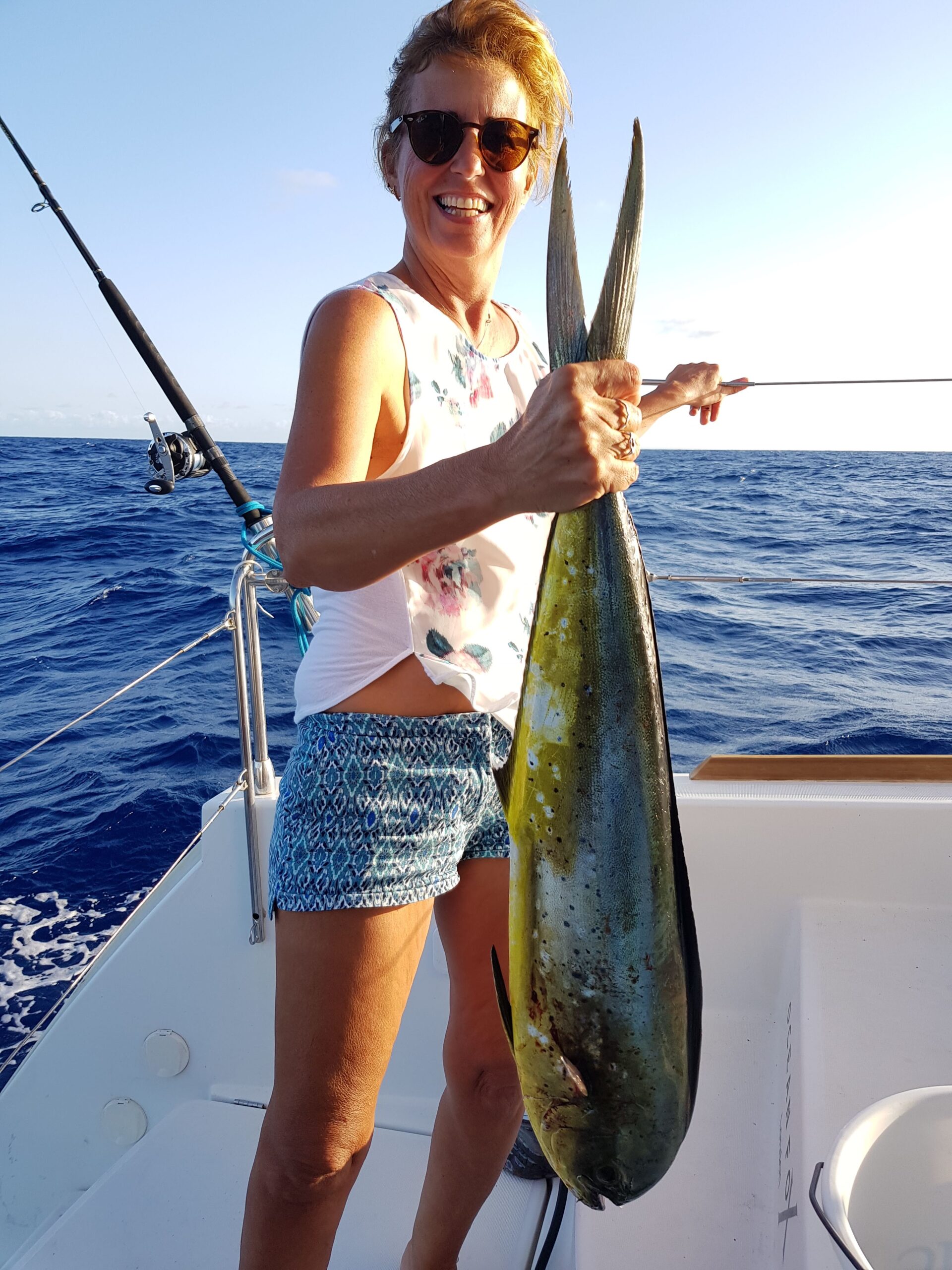 By now Carla was having success with her fishing. Each day she would land either a Tuna or a Mahi Mahi. She would then fillet the fish, bag them into portions, and put them into the freezer. Some of these fish would give us enough food for well over twenty meals.