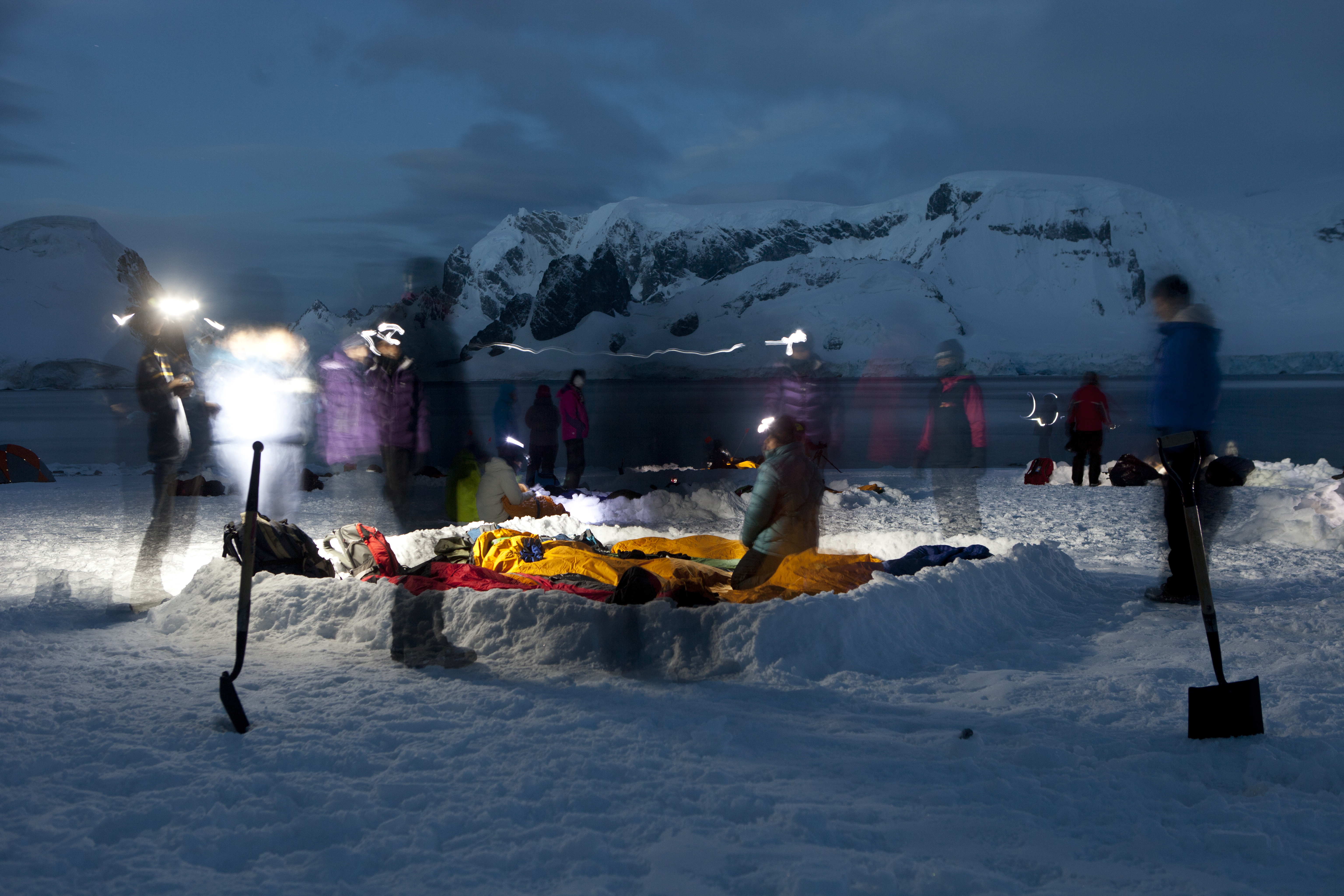 Camping out on the continent is an experience of a lifetime. “Survival night” as we called it, and rightfully so, was windy, snowy, and cold. However, it was also some of the best light we had on the trip (most days were overcast). As the sun dipped, we dug our snow trenches (yes, we didn't use tents- on account of our guide being a sadist) to protect us from the wind, put down a tarp and got into our sleeping bags. We didn't sleep for more than five minutes, but it was totally worth it. We got to gaze at the milkyway all night, and also got pelted with snow, strong winds, and ominous sounds from the leopard seals nearby. You’re probably thinking, “how did you poop”? These are the kind of questions that keep me up at night, as well. The ladies got a nice little portable toilet in a tent while the men got a bucket, outside. The next day we heard that one of the members of our team went to do his business and was approached by a curious seal. Needless to say, he did not finish his business.