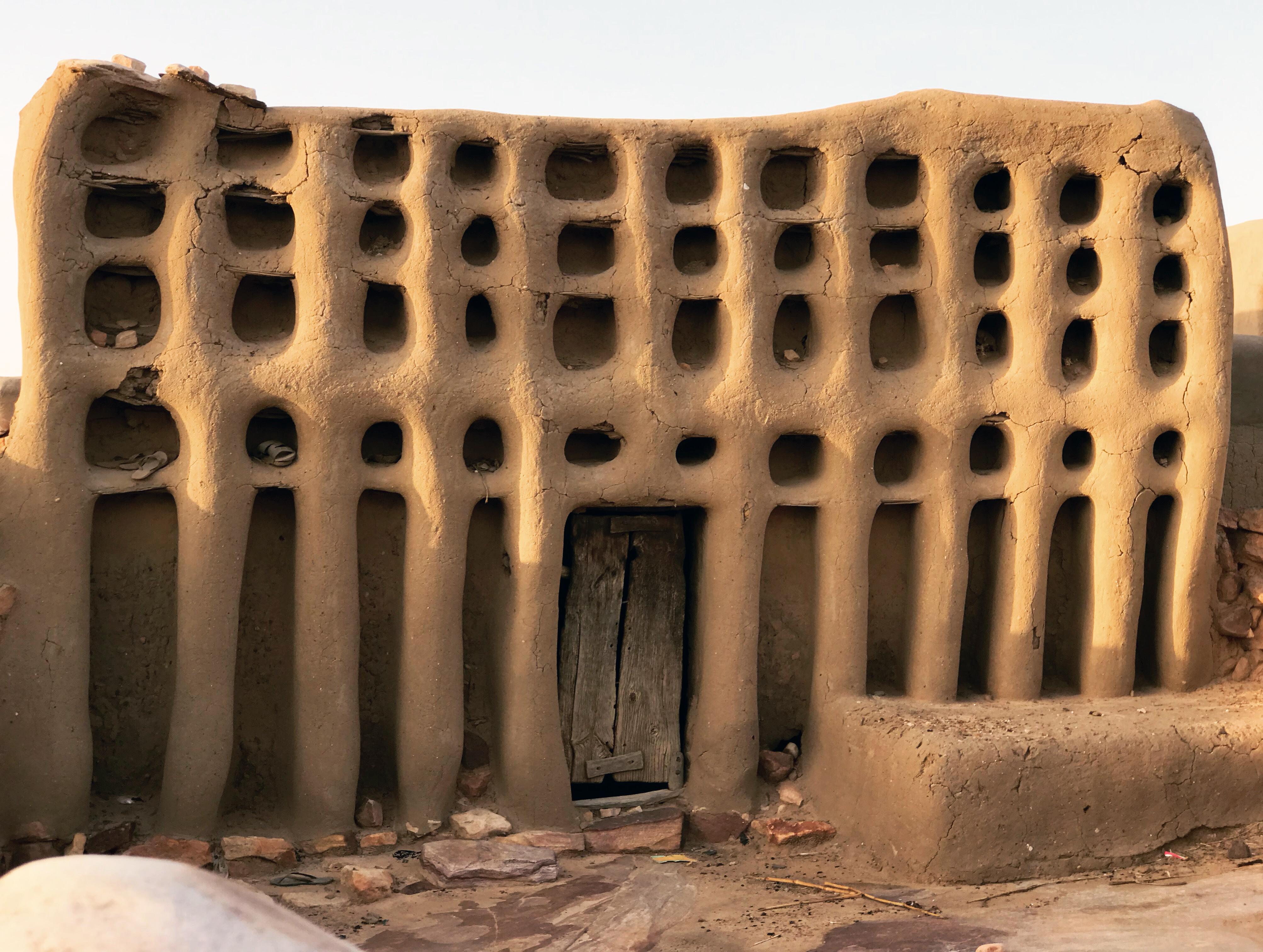 As well as Togunas, the villages built on escarpments had mud-built granaries dotted around. The number of granaries indicated the number of women living in the village, for each woman has her own, in which she stores food for her family. Unlike the rest of Mali, women in the Dogon country are economically independent and earn and spend their own money.