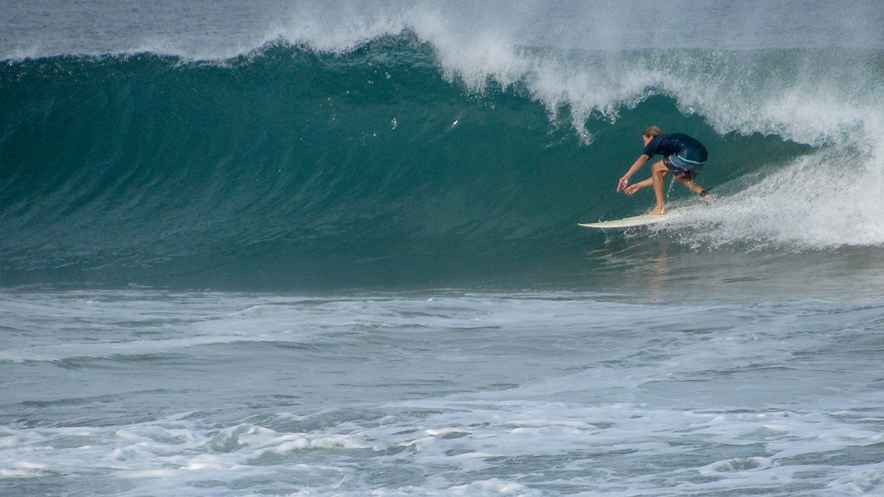 On the first morning I woke up at the crack of dawn and peered out to the beach below, which was visible from the deck of my airbnb. It was a perfect day for a newcomer to Puerto. Not too big, but not too small. There was an ideal, medium sized swell on tap.