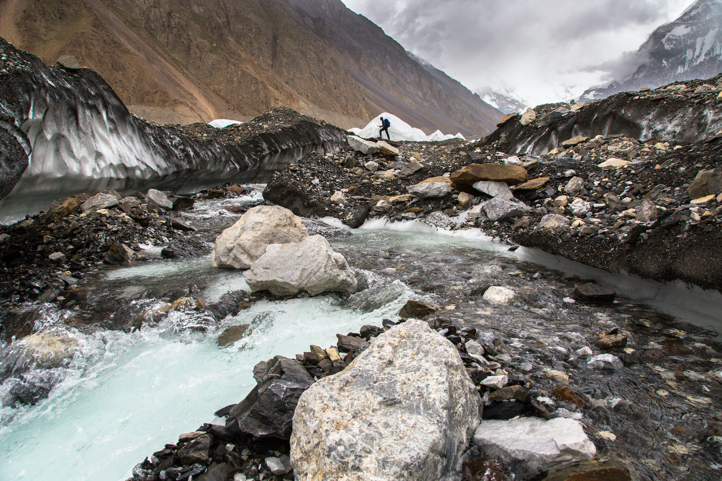 "There are a lot of ways to die here", remarked Sergiu. We had seen a car sized boulder break loose from the ice, and free fall 50m into a glacial lake. The resulting explosion of ice and water sent shock waves in all directions. The glacier groaned and heaved. The ice beneath our feet felt unstable. Then the turmoil subsided and silence returned to the ever-shifting Karakoram landscape that had become our home.