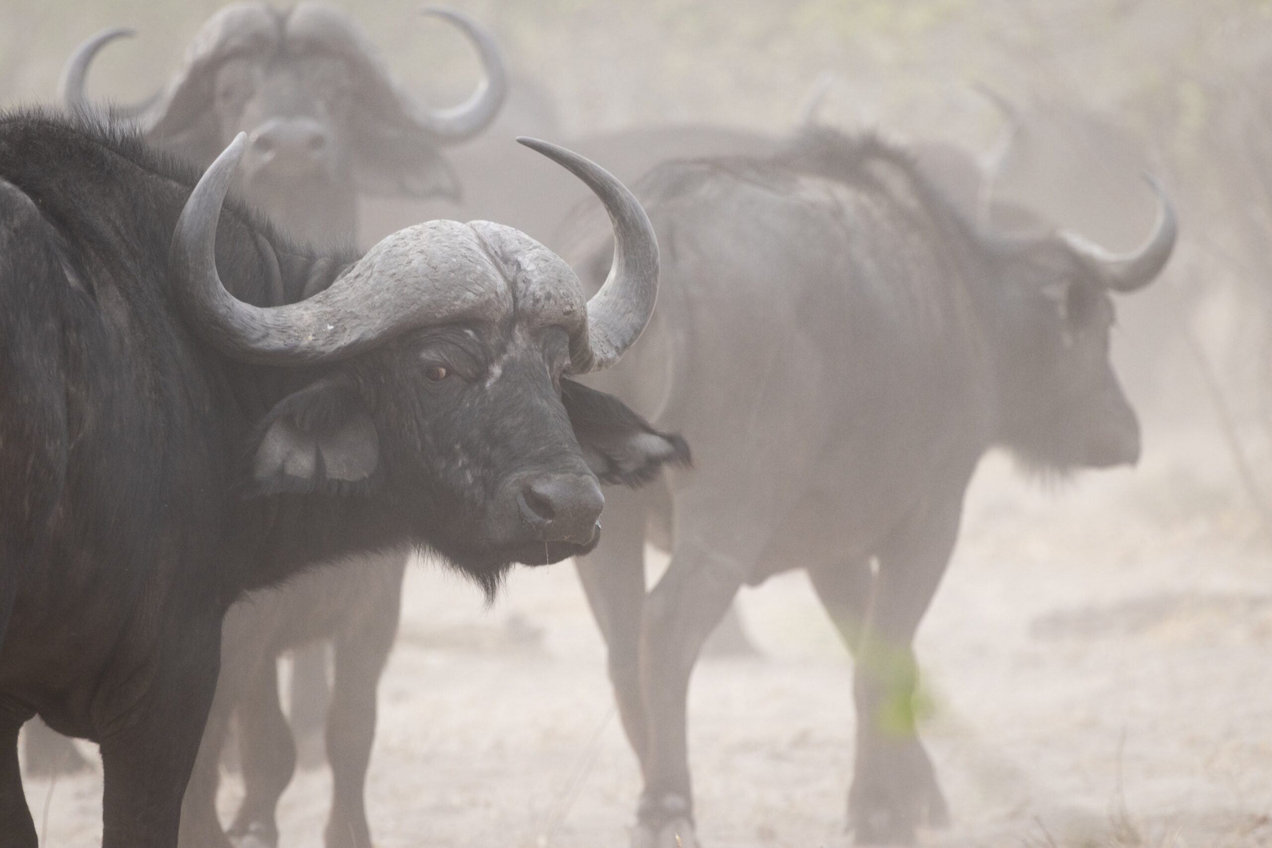 The next morning the camp is abuzz with talk about what had happened the previous night. As we drink our early morning coffee, before heading out on a game drive, the cook and her assistant regale us with the tale of what had gone on in the staff compound during the night. After charging past our room, almost getting tangled in the tent’s guy ropes en route, a huge buffalo, with three lions, two male and one female, in hot pursuit, stumbled into the clearing between the staff houses. One male leaps onto the buffalo’s hindquarters, almost bringing it down. But then he spots the other male who, distracted by the female, is clearly in the mood for romance. Torn between his desire to eat and his desire to mate, the male abandons the buffalo and turns on the other male. The two scraps and fight, each vying for the prize of the clearly desirable female. Periodically the males break off from the fight and turn their attention back to the buffalo. In the end, they are so busy fighting one another that the buffalo slips away unnoticed. The lions too slip away after a while, and the staff finally managed to get back to sleep. By the time the story has been told, our coffee has been drunk, toast and porridge has been consumed, and it’s time to head out with Kenneth, our guide, to see if we can find any traces of the previous night’s action.