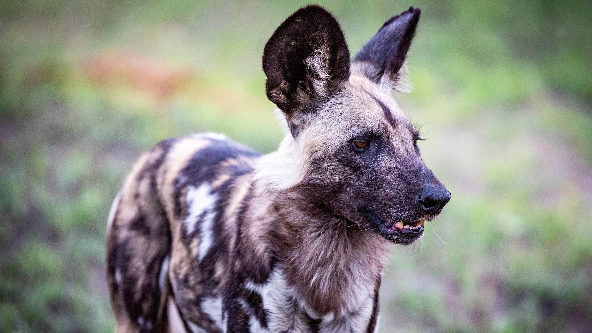 Early morning finds us sitting silently beside a hyena den. At first, it seems as though there’s nothing to see. But as the sun rises a little higher in the sky, and the air grows a little warmer, we spot a couple of moist, black noses poking out of the den’s entrance, testing the air. The noses disappear. A minute later eight baby hyenas of various sizes, and ranging in colour from black to mottled brown, tumble out of the den. There is no sign of any adults, and the two smaller babies stay close to the entrance of the den, slightly nervous and ready to disappear at the first sign of danger. Our guide Joe, and his sidekick Mighty, tell us that the babies range in age from ten weeks to four months, and belonged to three different mothers, all of whom were presumably still out hunting. They are equal parts cute and curious, we spend some hours watching them play and wrestle, laying the groundwork for seniority and dominance in later life. One particularly brave youngster heads over to the vehicle and stands by the door looking up into our eyes. He seems so brave and so confident, we could almost reach out and touch him, but obviously, we don’t! One of the mothers returns to the den, the youngsters all scampered in her direction, licking her mouth, looking for the taste of blood. She drops a piece of bone and a few scraps of meat and they get busy eating.