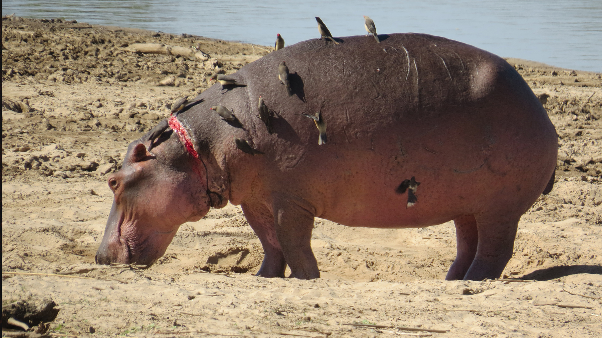In Zambia’s South Luangwa National Park a hippo stands on the water’s edge, with a poacher’s snare cutting deep into its neck. In normal situation like this, a task force would mobilise to rescue the hippo, dart it, remove the snare and give it the medical attention it needs to aid recovery, but as one operator says… “It is ludicrous to dart a snared hippo when the government is planning on shooting 2,000, the cost of darting and the risk is extremely high.”