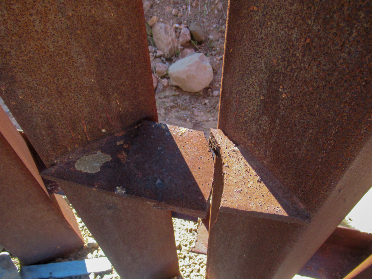 It didn’t take a rocket scientist to follow the evidence of crossings straight to where the current border wall ends. The barbed wire fence showed clear signs of crossings, whereas the steel border did not.