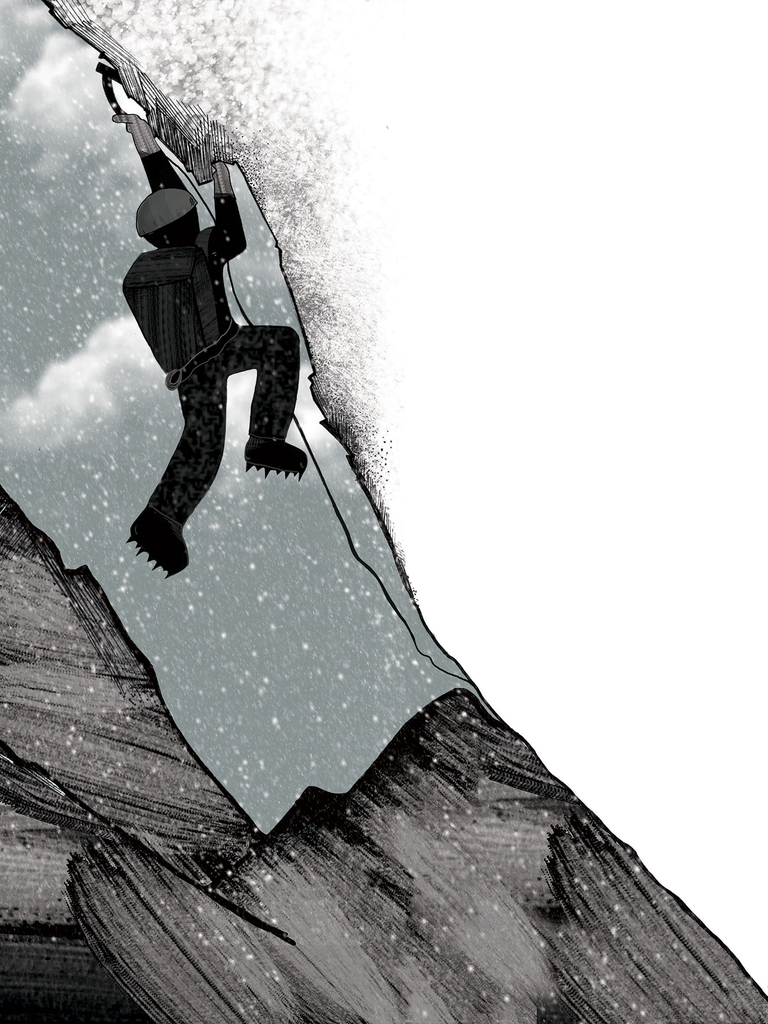 Without specially adapted materials, rappelling down such a steep, rocky wall is practically impossible. The team didn’t want to risk a second accident. After returning to the summit, they convinced the first guide that her client’s chances of survival were infinitesimal and that rescue was impossible. A heavy silence descended over the two groups. With no alternative, they returned to camp as quickly as possible, all silent, except for the minimal utterances needed for the technical aspects of their downward descent.