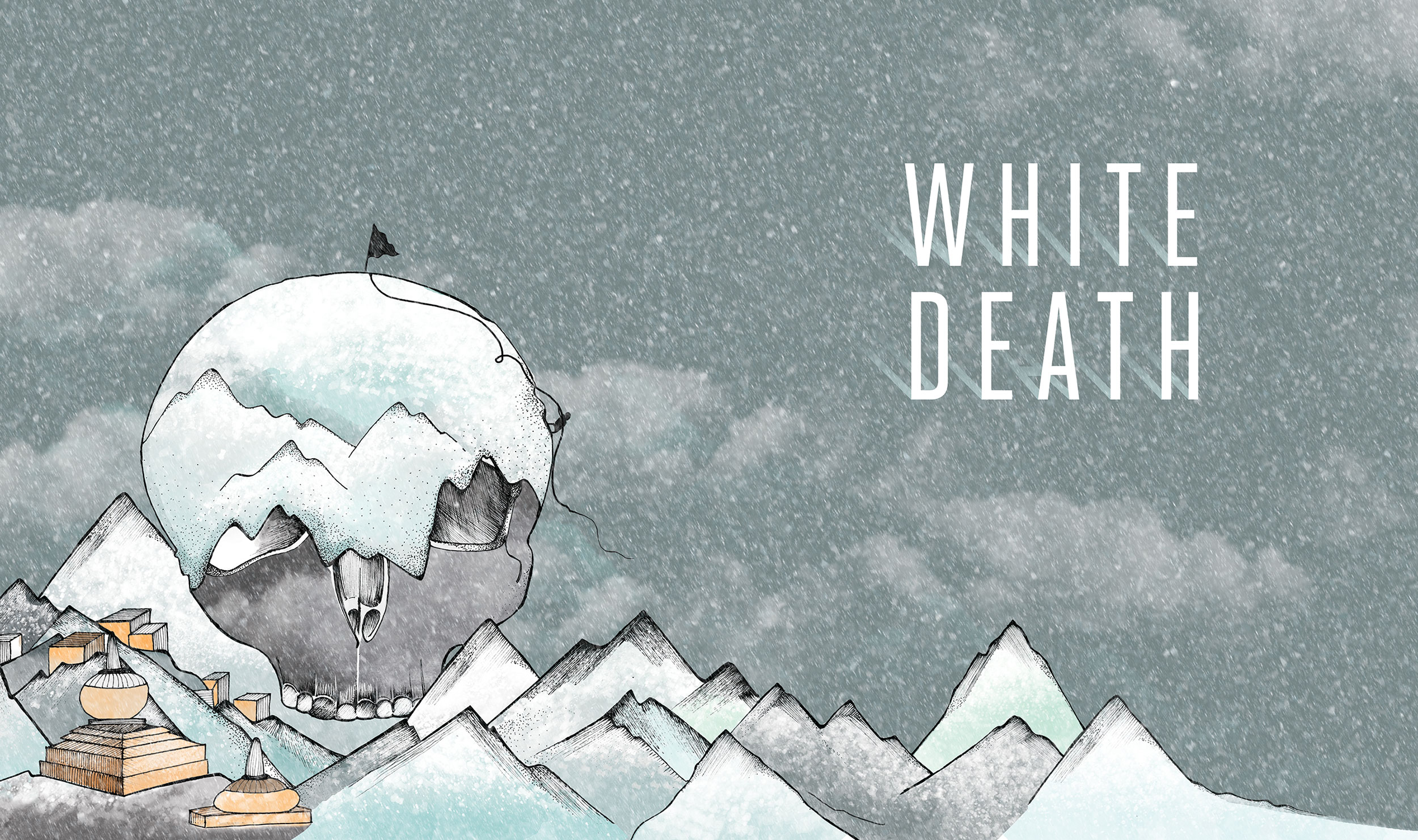 It sweeps tiny particles of snow over the sight of the tragedy like white death.