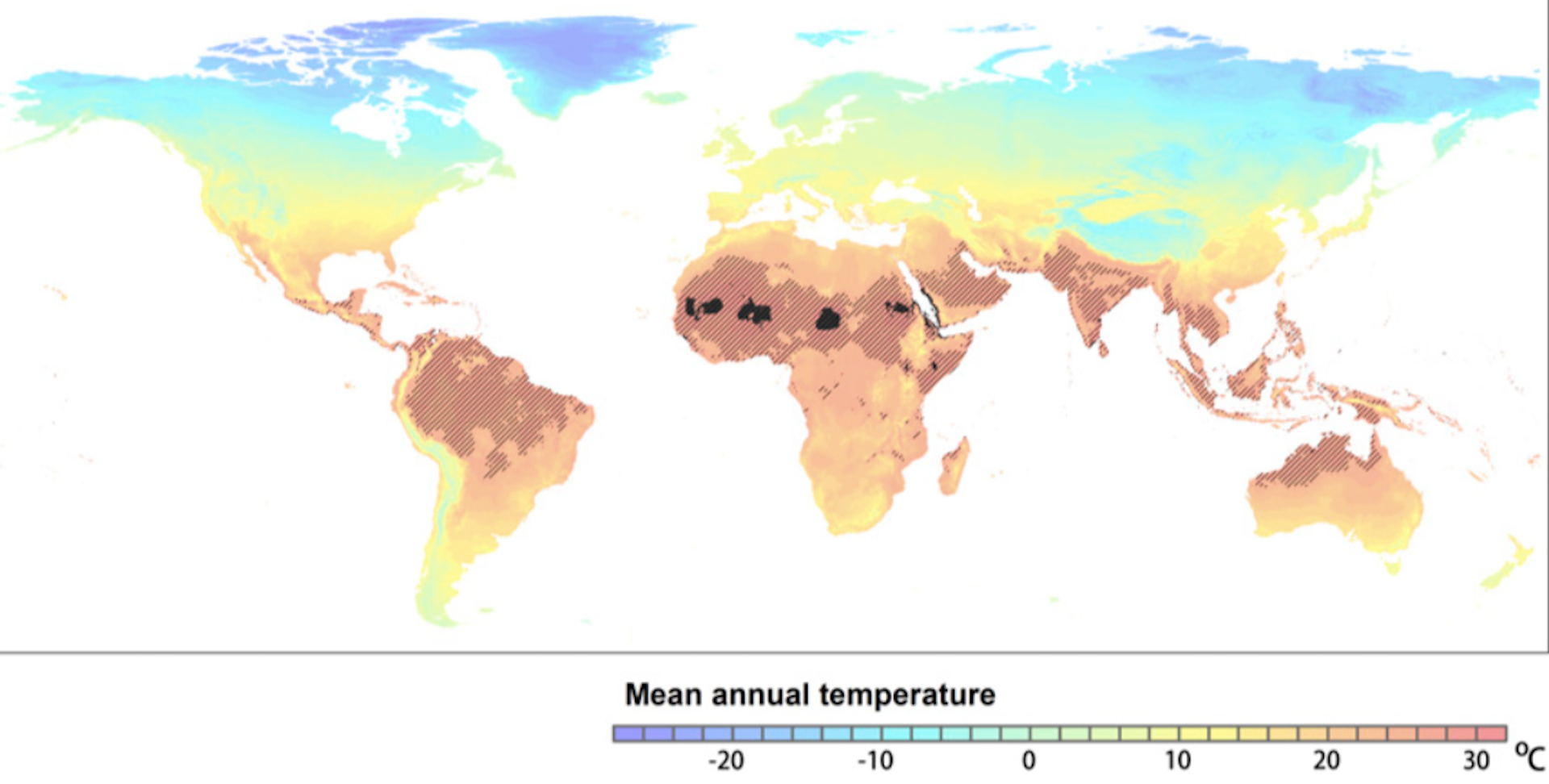 Reservations aside, this is a brilliant thought experiment. Using the historic and current human climate niches show us just how many people in the world, between 1.5 and 3.5 billion, will be shifted out of their current climate range due to global warming. It also highlights that the people most affected by shifting climate zones are the poorest and those that most rely on food that is produced by smallholders working outside.
