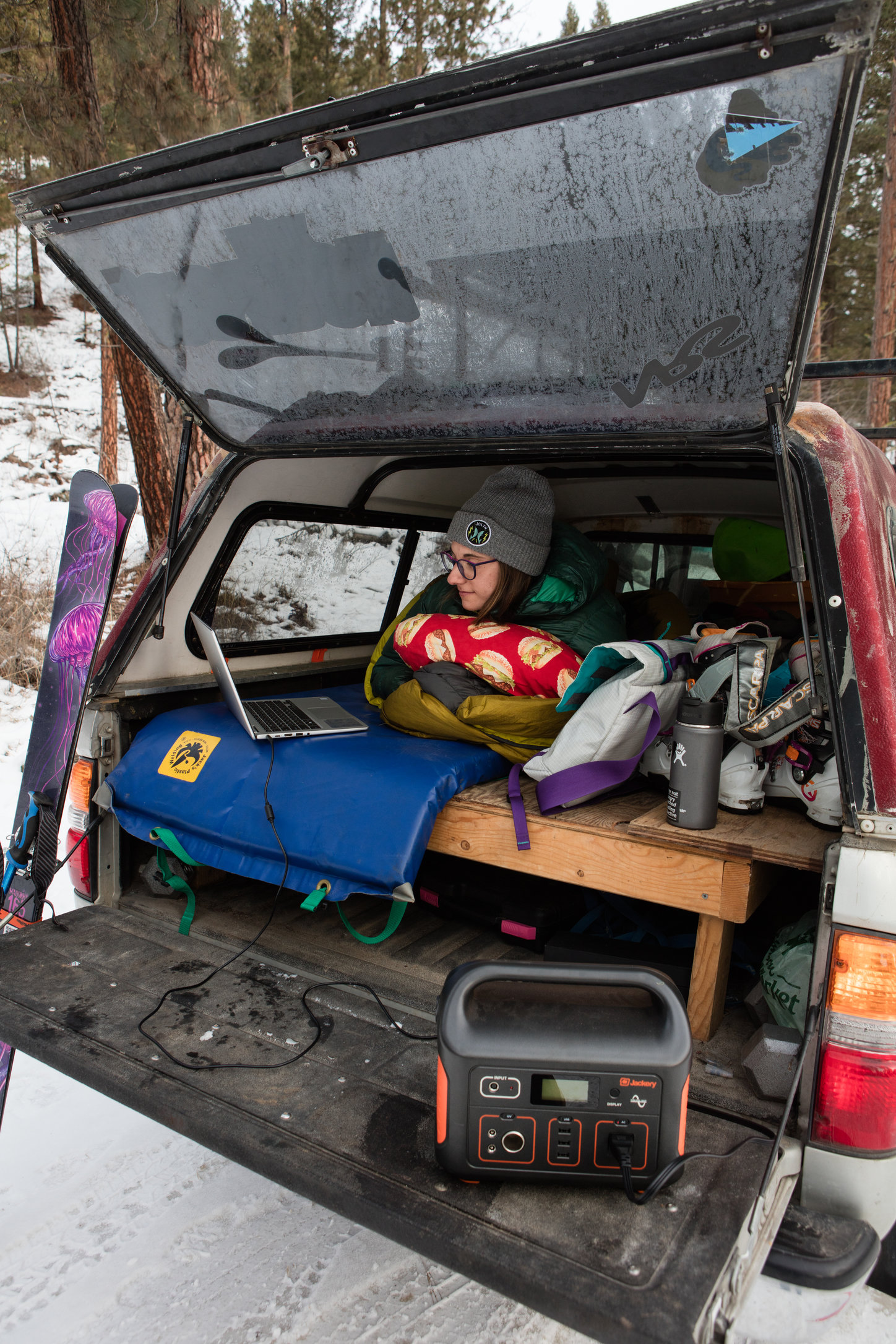 Several hours of transcribing interviews, picking out good quotes, and writing later, my eyes are so heavy I can feel my head slowly nodding towards my laptop screen. I stash my laptop and the Jackery Power Station, crawl into bed, and dream of surfing Peace Wave until morning, when I wake up and do it all over again.